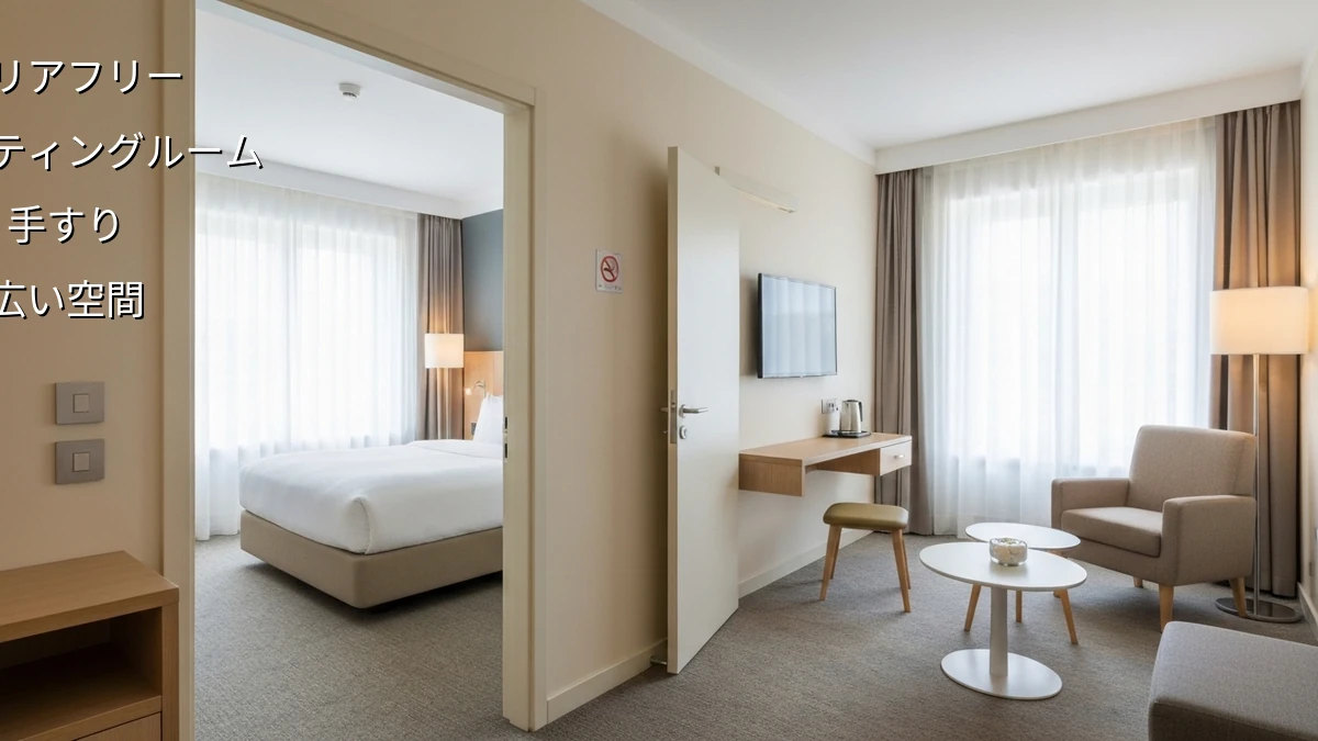 【バリアフリー客室とは?】 バリアフリー客室は、車椅子利用者や高齢者、その他身体的な制約のある人が快適に過ごせるように設計された客室のこと。単に広いだけでなく、段差の解消、手すりの設置、バスルームの工夫など、細部にわたって配慮されているんだ。